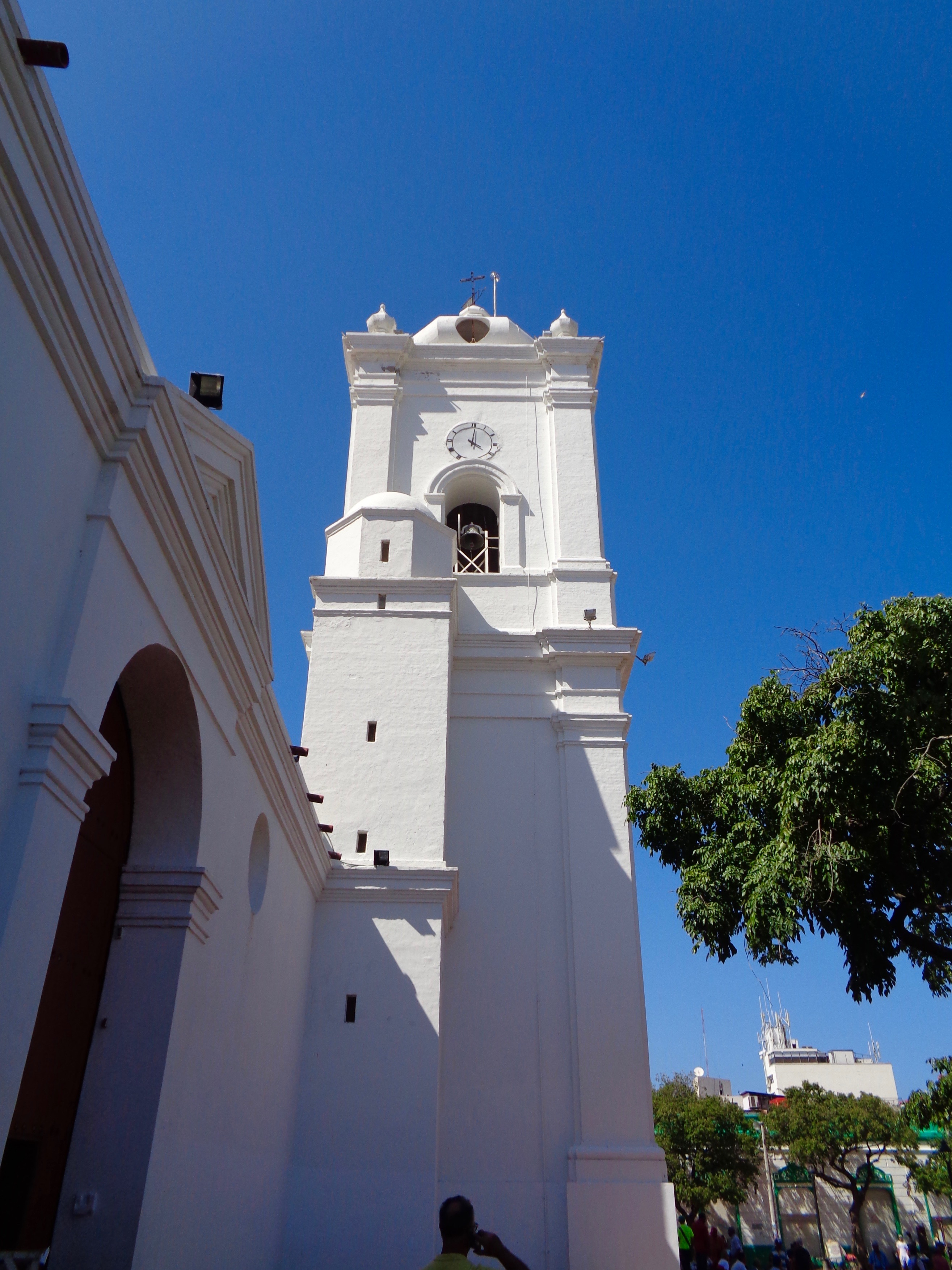 A low-angle view of the Santa Marta Cathedral in Santa Marta, Colombia.