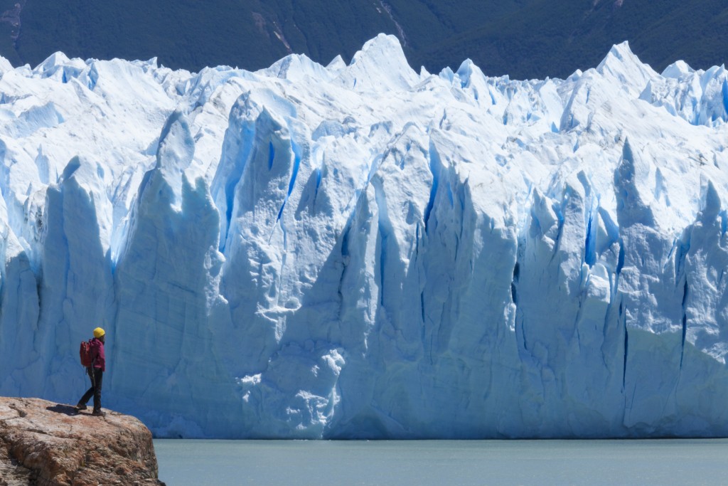 A woman looks out over the Perito Moreno glacier in Argentina’s Los Glaciers National Park