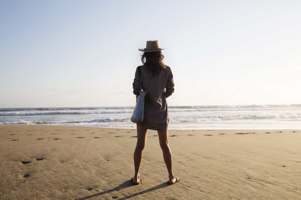 A young woman at the beach at sunset