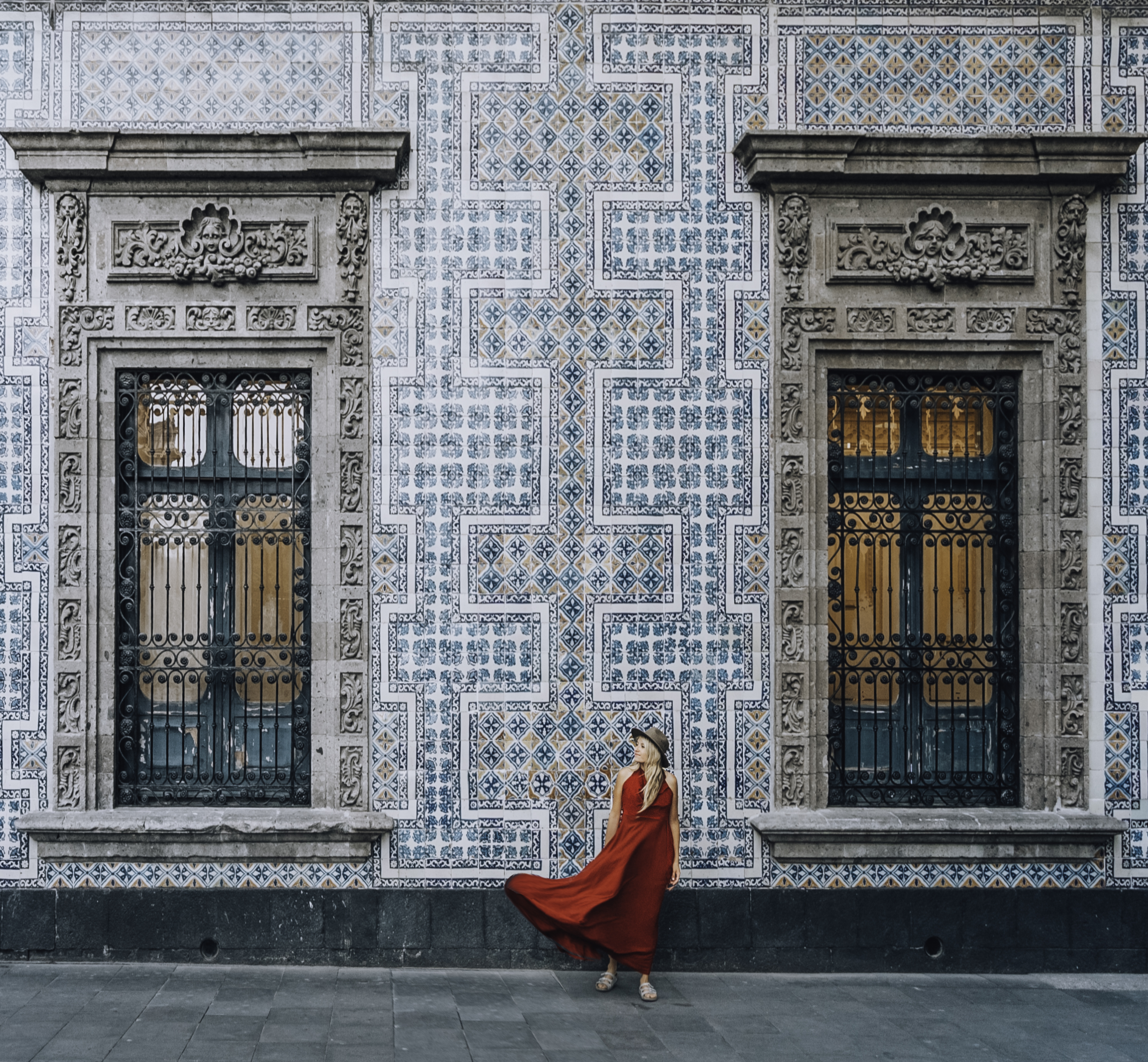 A Young Woman Wearing A Red Dress In The Streets Of Mexico City. ID: 68248 Photo taken in Mexico City, Mexico