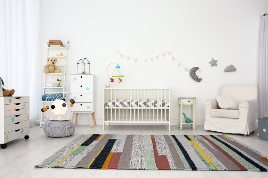 Acogedor interior con cuna y sillón