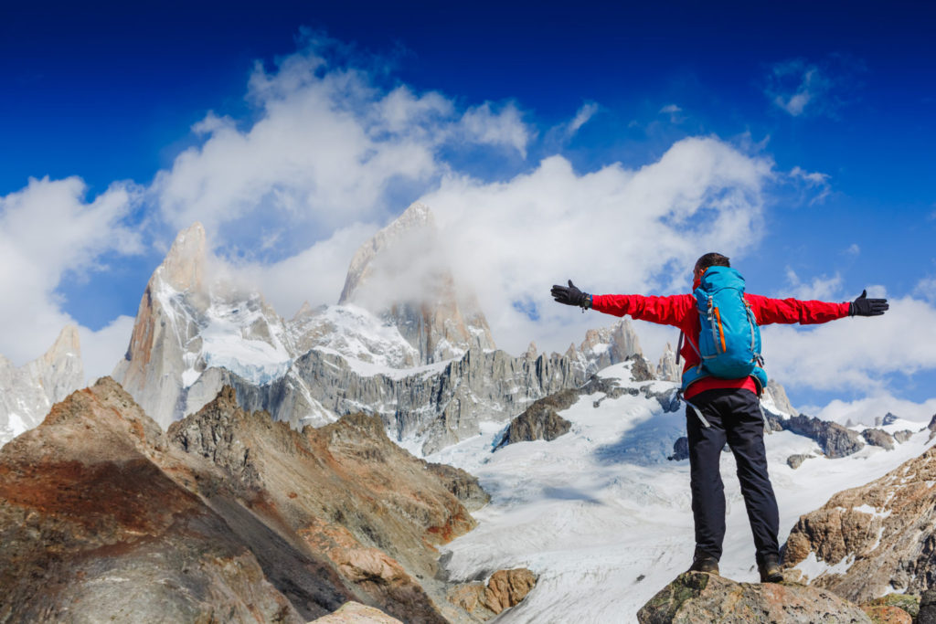 active hiker hiking enjoying the view looking at patagonia mountain