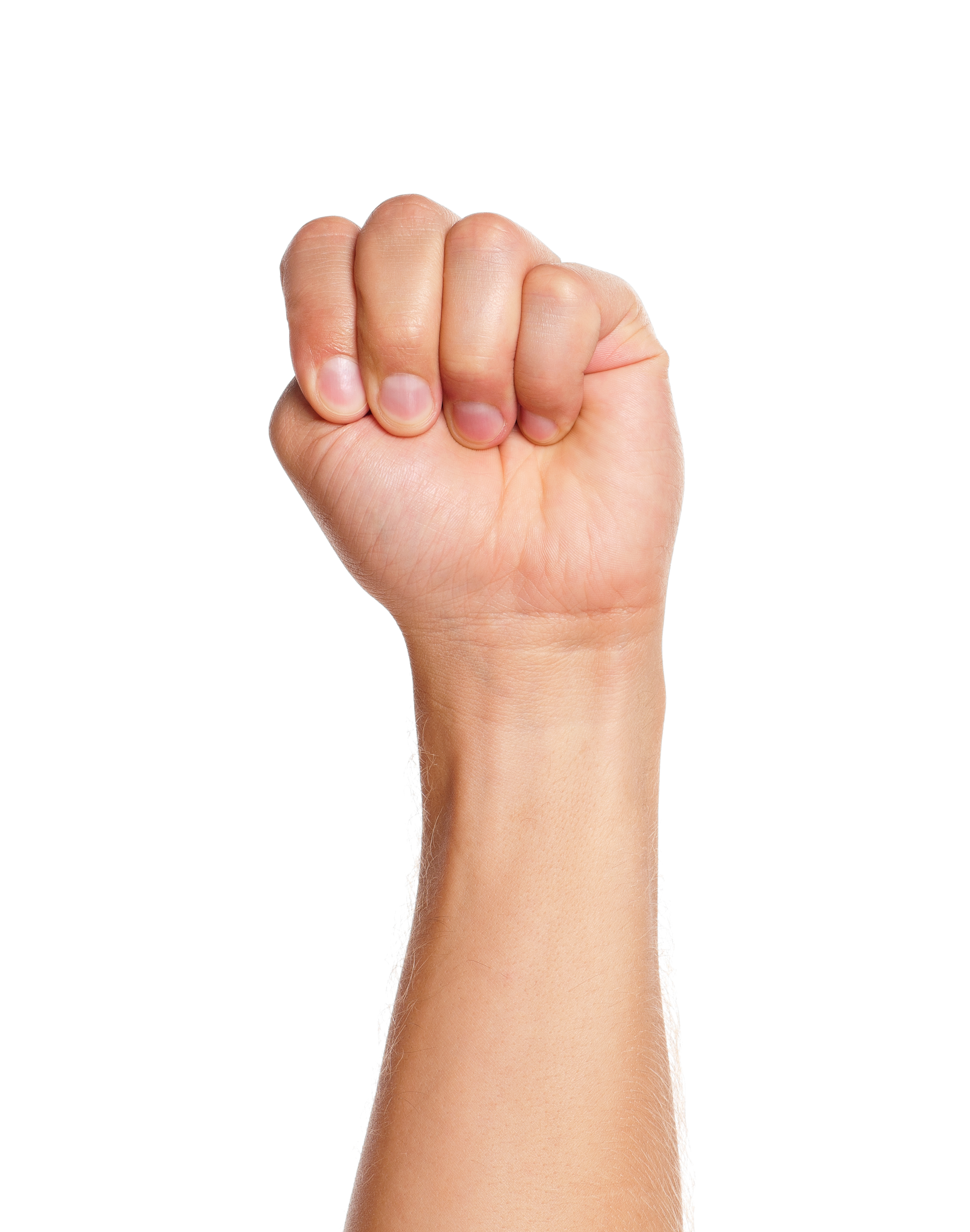Adult man hand sign – punch strong fist gesture, isolated on white background.