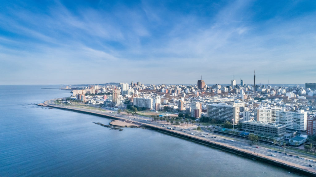 Aerial view, high angle view of Montevideo’s coastline, Ciudad Vieja neighbourhood, Uruguay