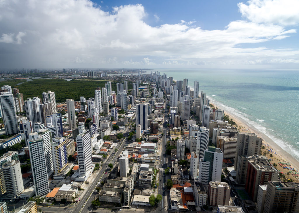Aerial view of Boa Viagem beach in Recife, Pernambuco, Brazil
