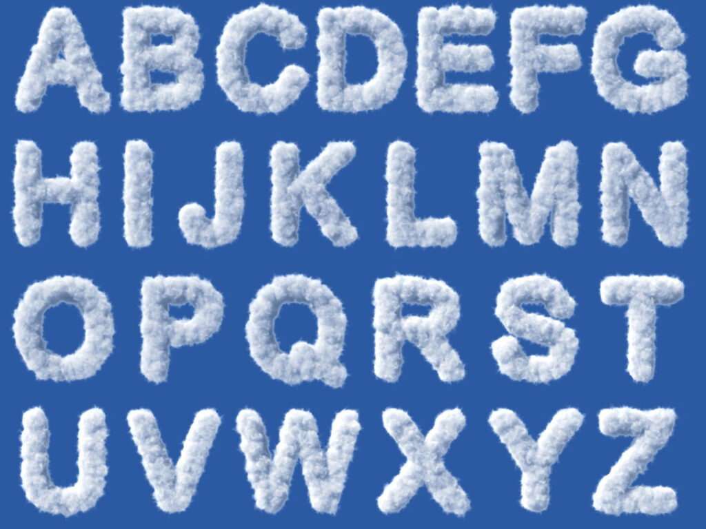 Alfabeto de nube sobre fondo blanco, procesamiento 3d de alta calidad