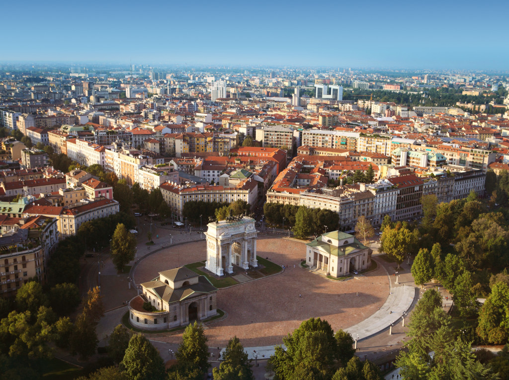 Panoramic view of Arco della Pace, Piazza Sempione, Milan