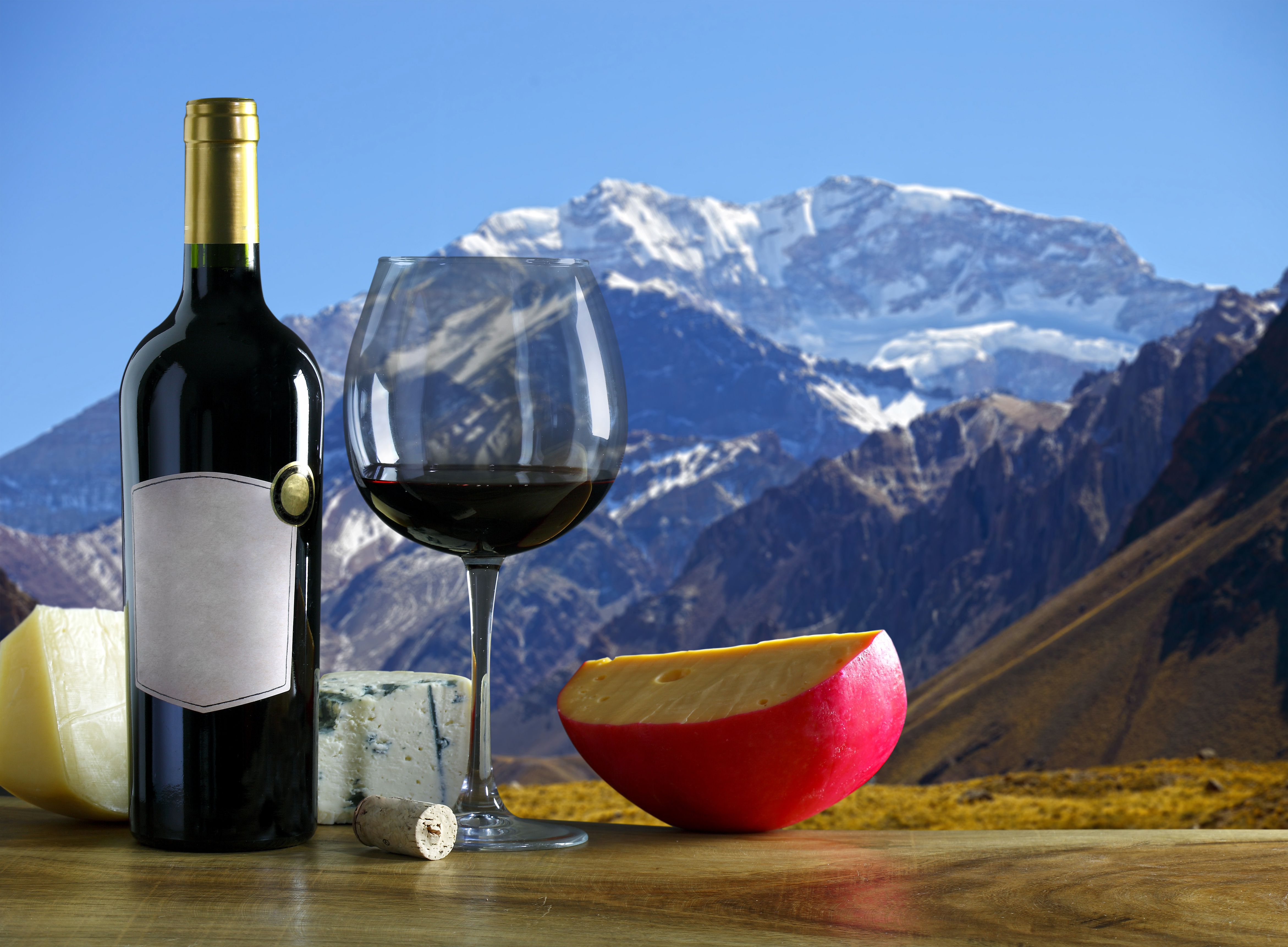 argentine wine and cheese aconcagua mountain in the background ID: 36984 Argentine wine and cheese Aconcagua mountain in the background.