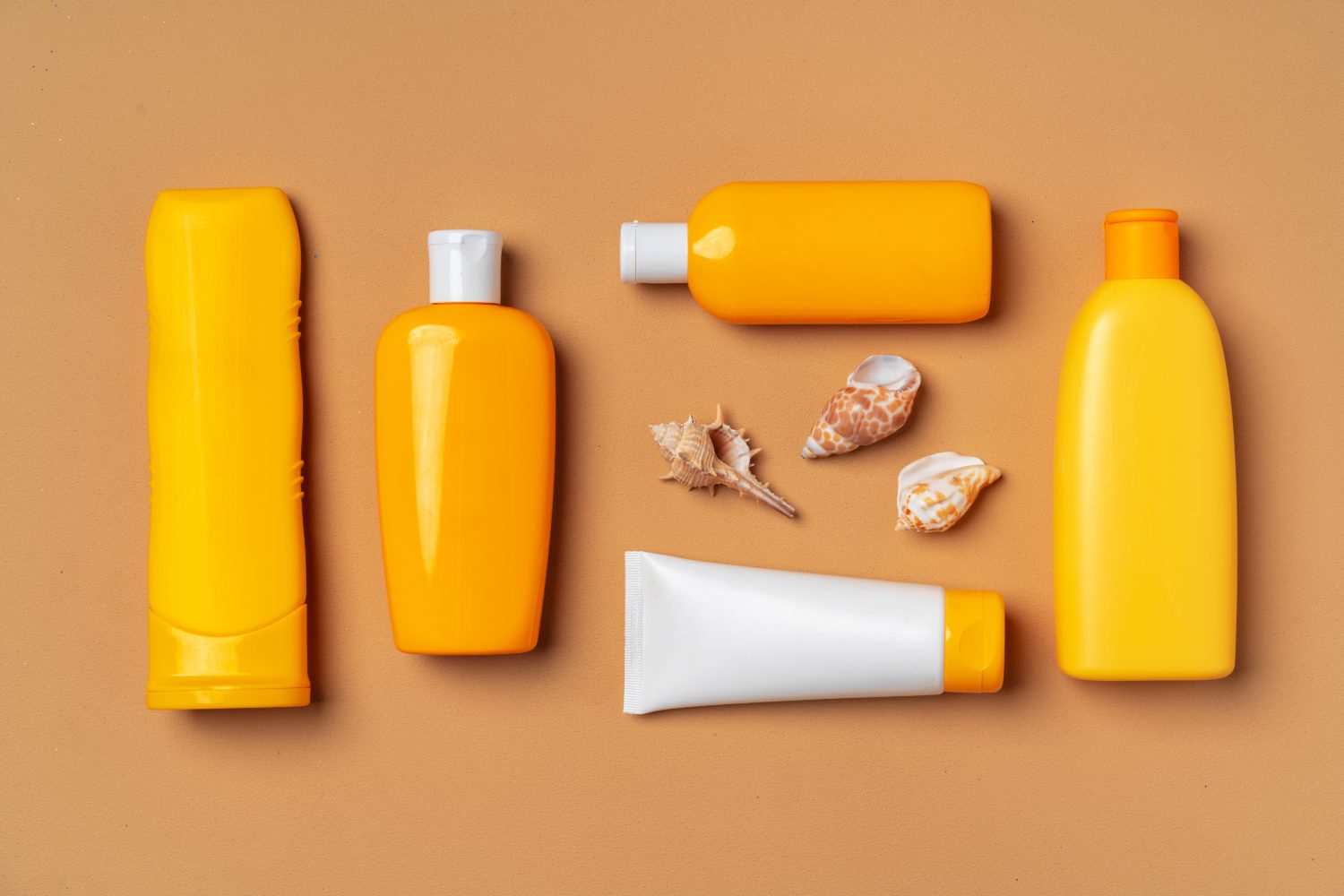 assortment of sunblock creams on beige background ID: 48073 Assortment of sunblock creams on beige background