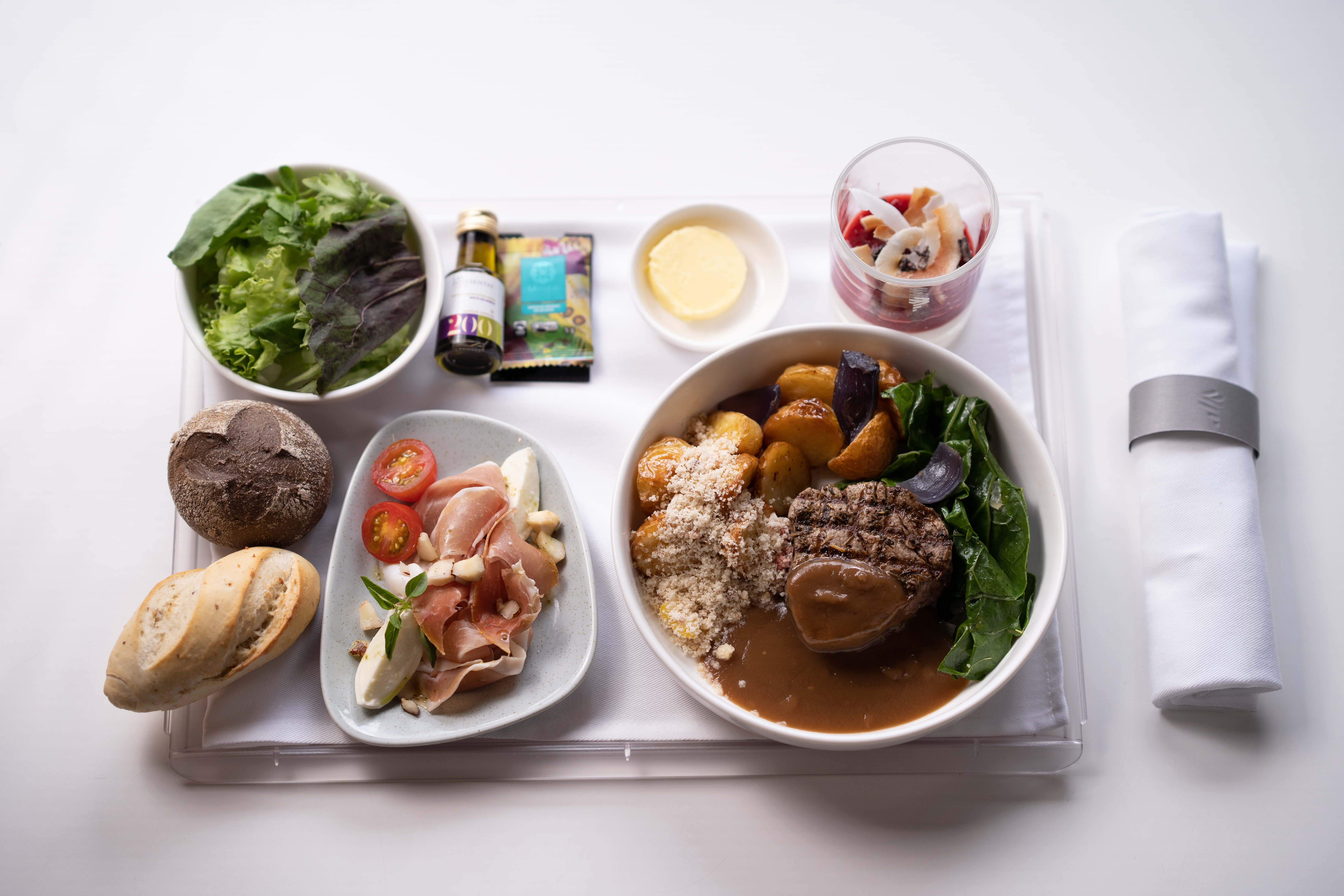 Bandeja de carne con batata, aperitivo y ensalada – menu business
