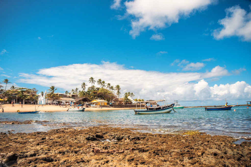 bay of praia do forte in brasil with fishing boats