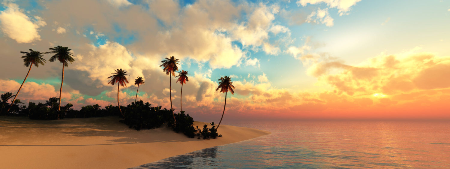beautiful beach with palm trees at sunset panorama of a