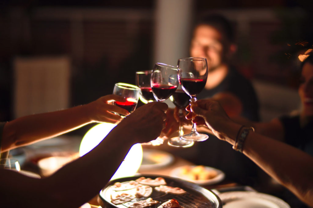 beautiful family toasting with cup of wine on dinner smiling