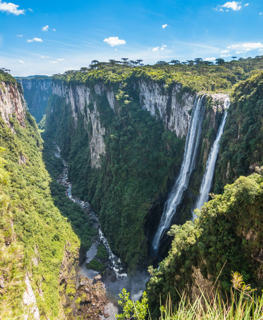 Beautiful view of a waterfall at Itaimbezinho Canyon – Cambara do Sul, Rio grande do Sul, Brazil