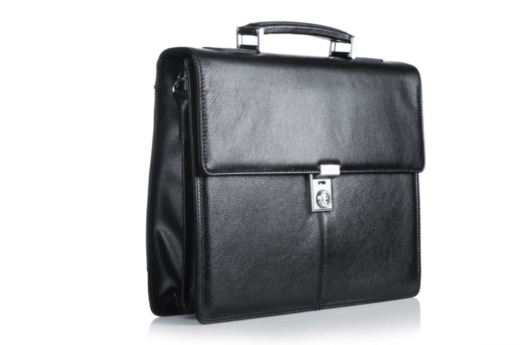 black leather briefcase isolated on the white