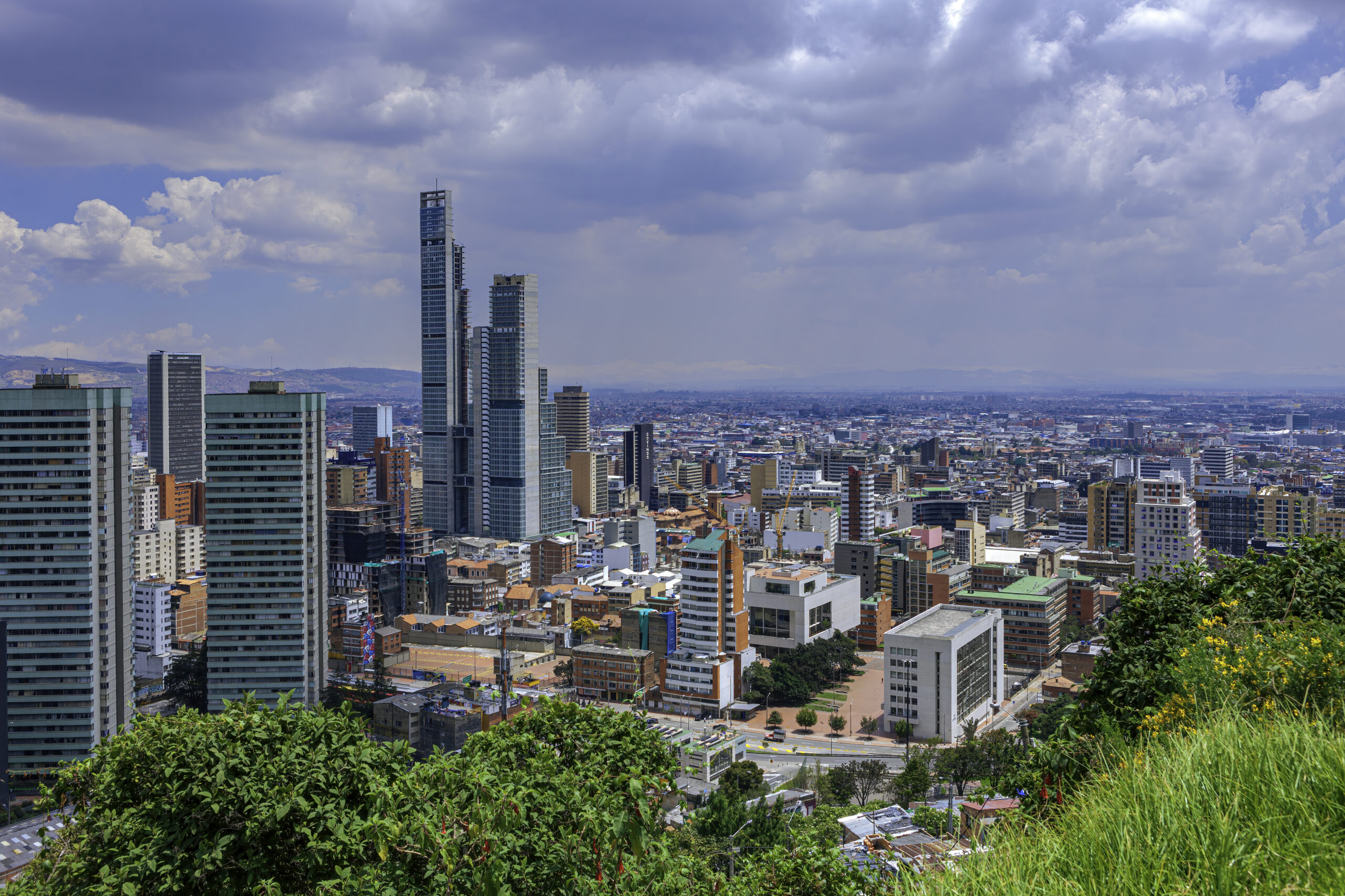 Bogotá, Colombia – Looking at a high angle view of BD Bacatá from a higher altitude on the Andes Mountains. The BD Bacatá with 67 floors on the South Tower, is the tallest building in Colombia and the 6th tallest in South America. The actual altitude of the Bogota, Colombia’s capital city, at street level is about 8,500 feet above mean sea level. It is one of the largest cities of South America with a population of almost 10 million people. Image shot on a clear morning on the Andes Mountains.