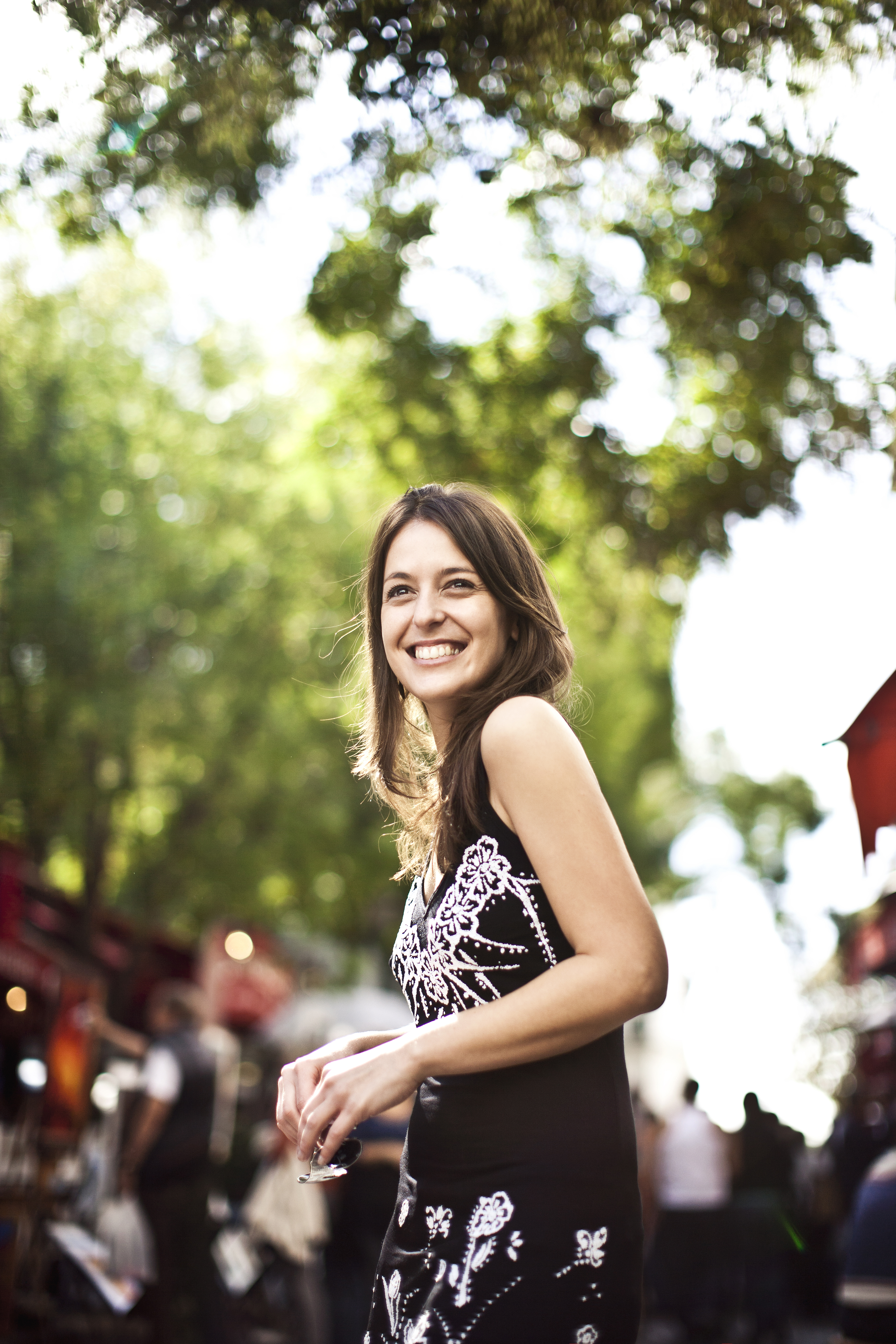 Brunette leaving a crowd cafe