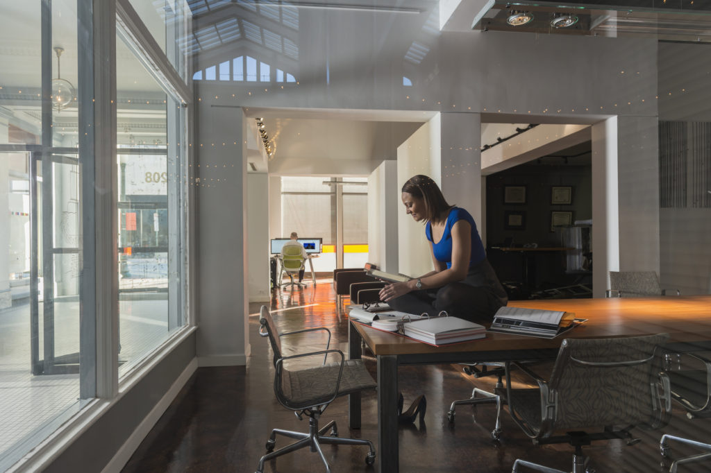 Businesswoman sitting on a conference table