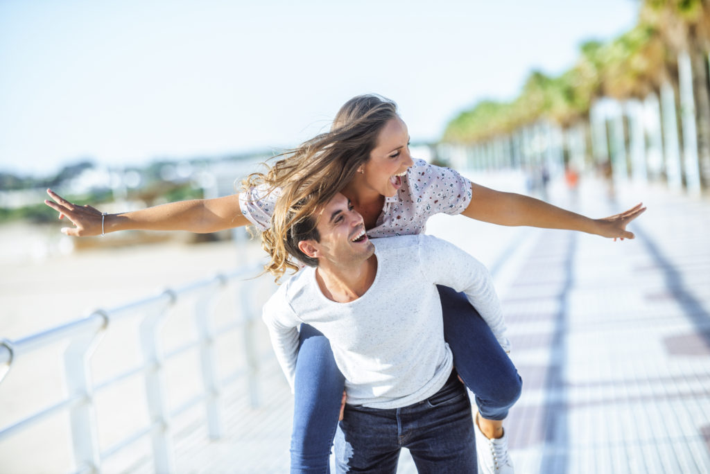 Carefree young couple on promenade