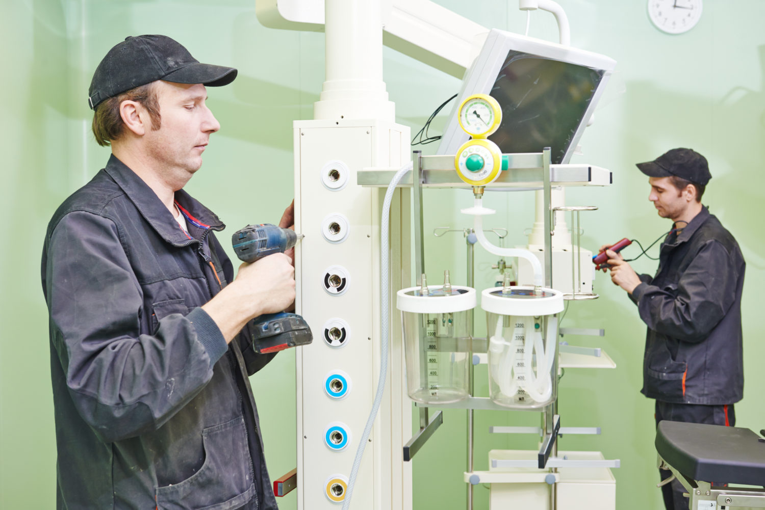 carpenters joiners with screwdriver mounting equipment at surgery room in