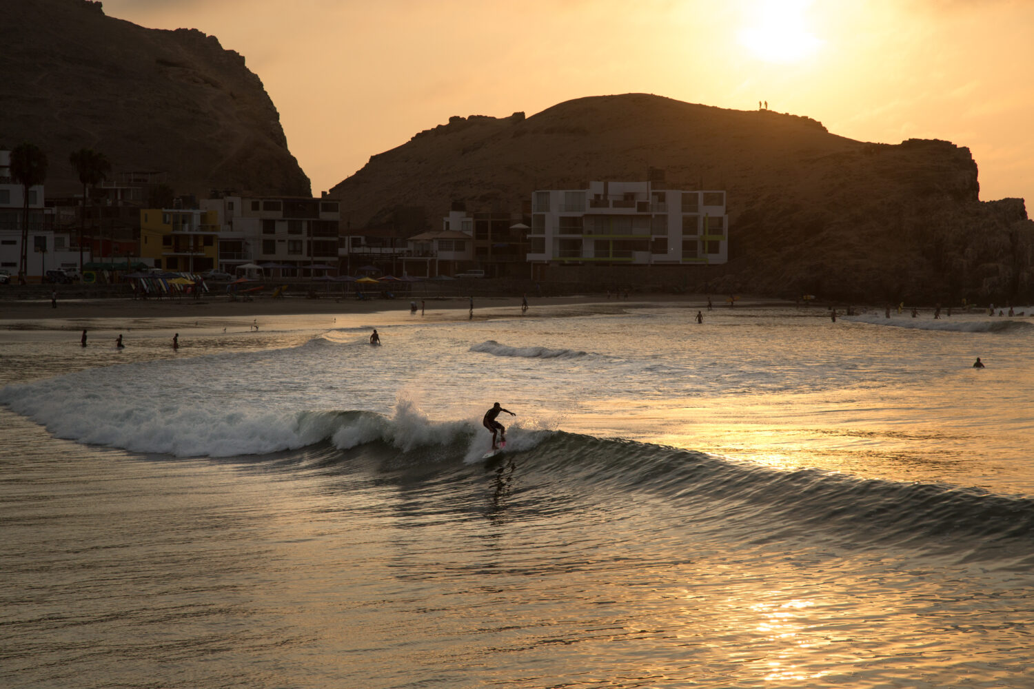 CERRO AZUL, LIMA, PERÚ: Surf al atardecer.
