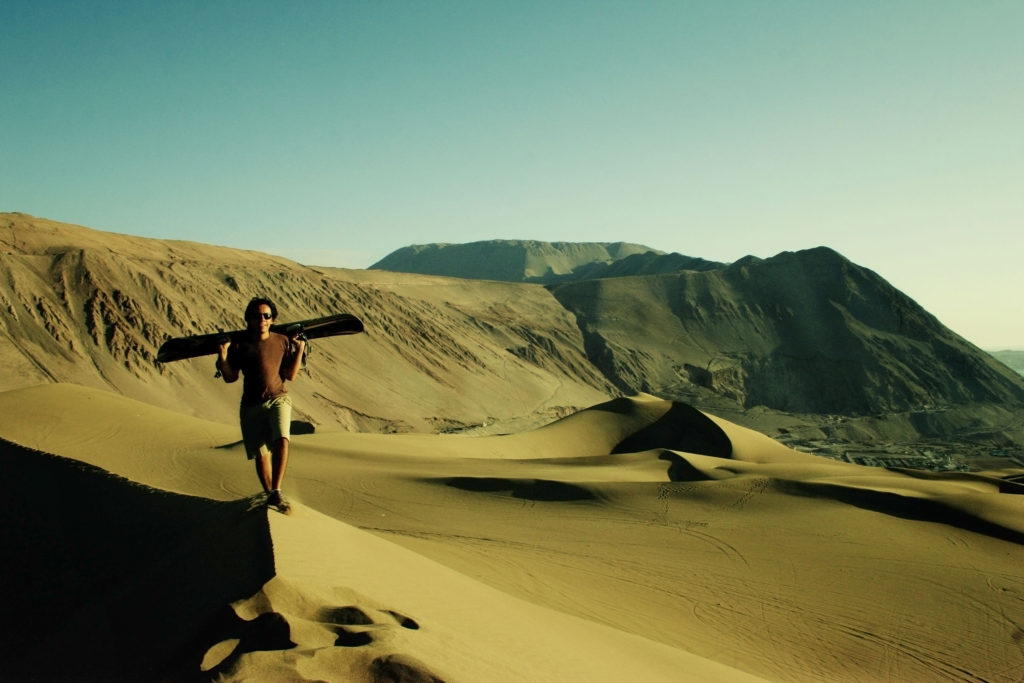 Chile, Iquique, Sandboard in Iquique’s dunes