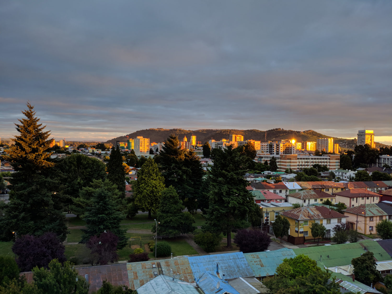 city sunset landscape in temuco with cloudy sky
