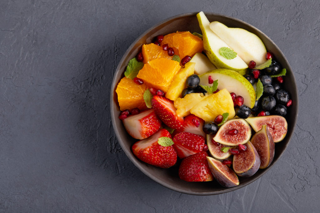 Close up bowl con frutas de Business Class.