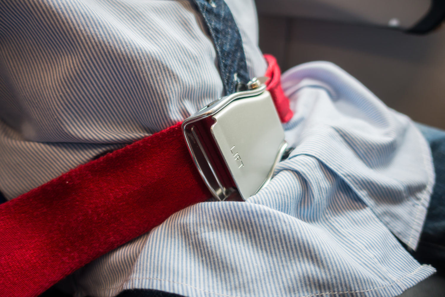 Close up of safety seat belt in the airplane