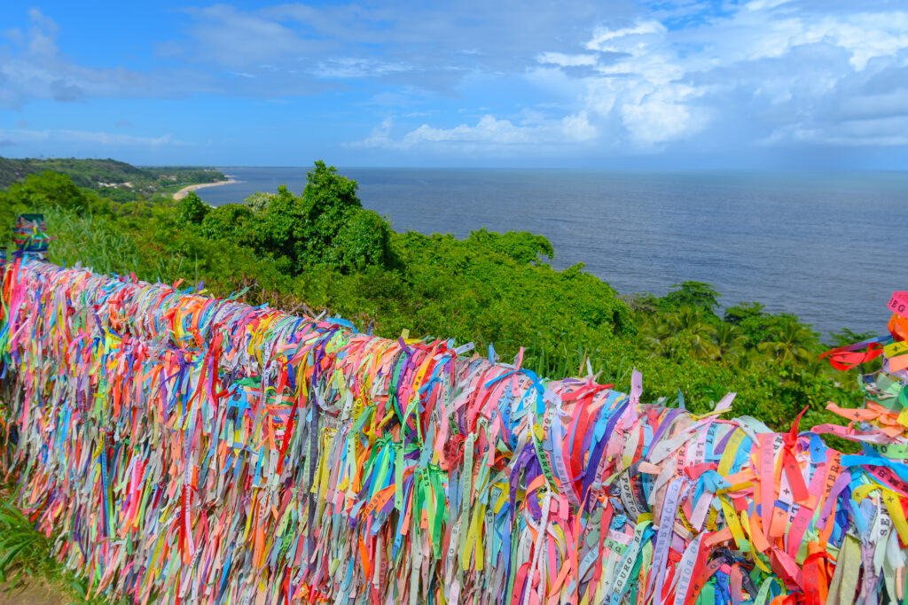 Colored ribbons tied to a fence, souvenir and tradition of those who visit Porto Seguro – Bahia, Brazil.