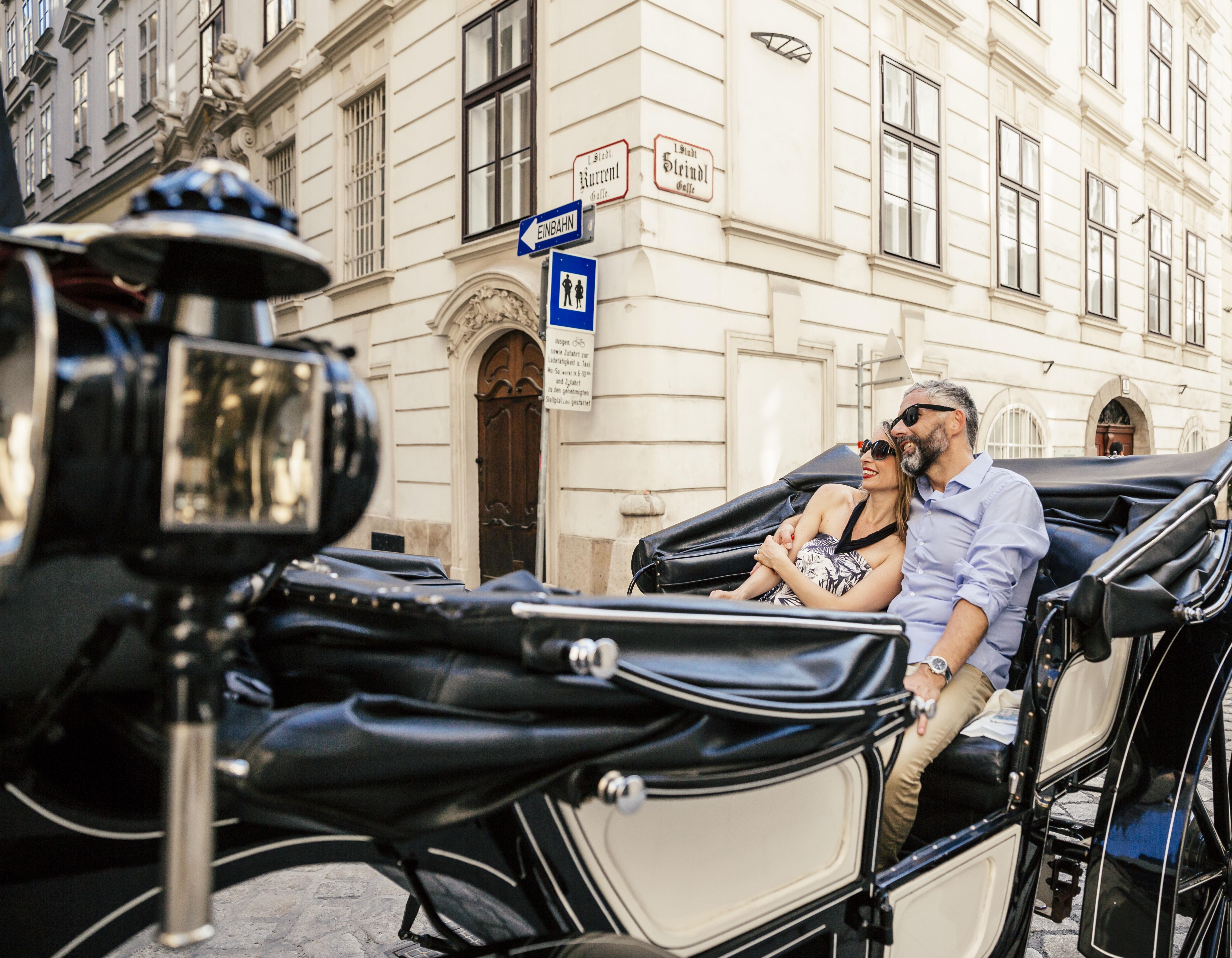 Couple in love on sightseeing tour in a fiaker, Vienna