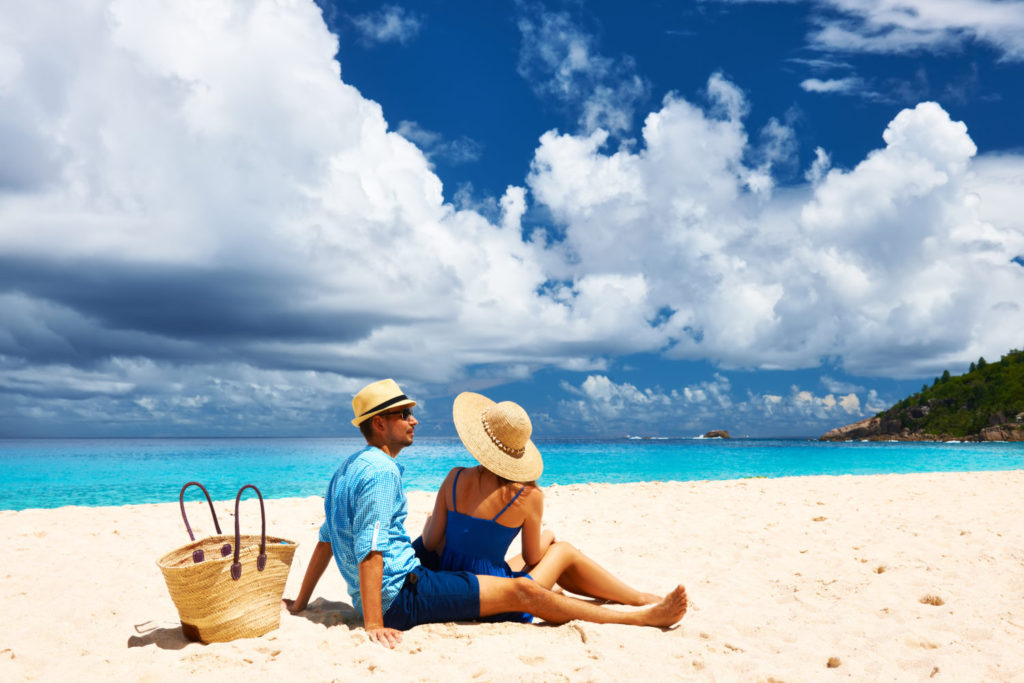 couple relaxing on a tropical beach anse intendance at seychelles