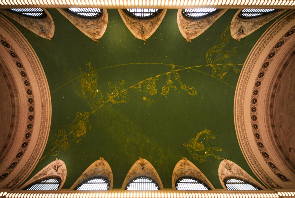 Artistic details inside the dome and ceiling of Grand Central Station in New York City, USA.