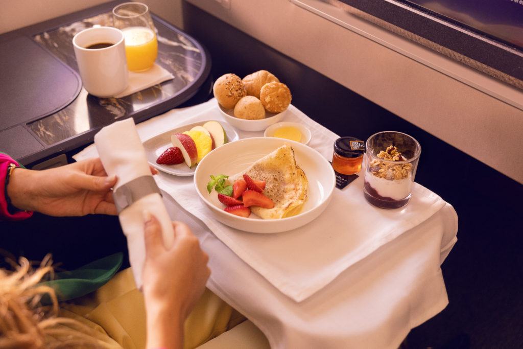 Desayuno Panqueques con manjar y frutillas – Cabina Premium Business