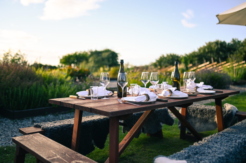 Det dinner table in garden