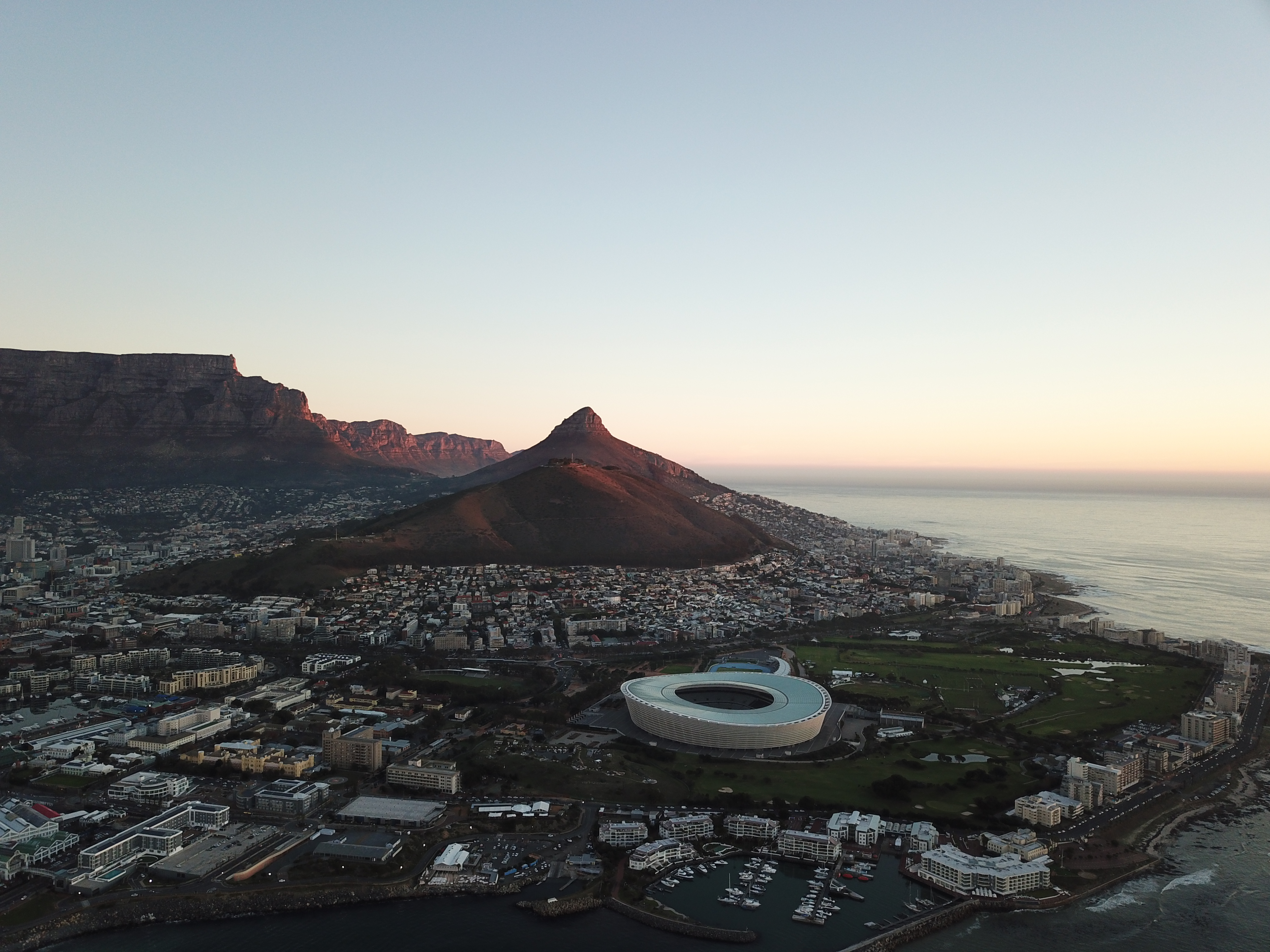 Drone pictures overlooking cape town city and Table mountain / South africa