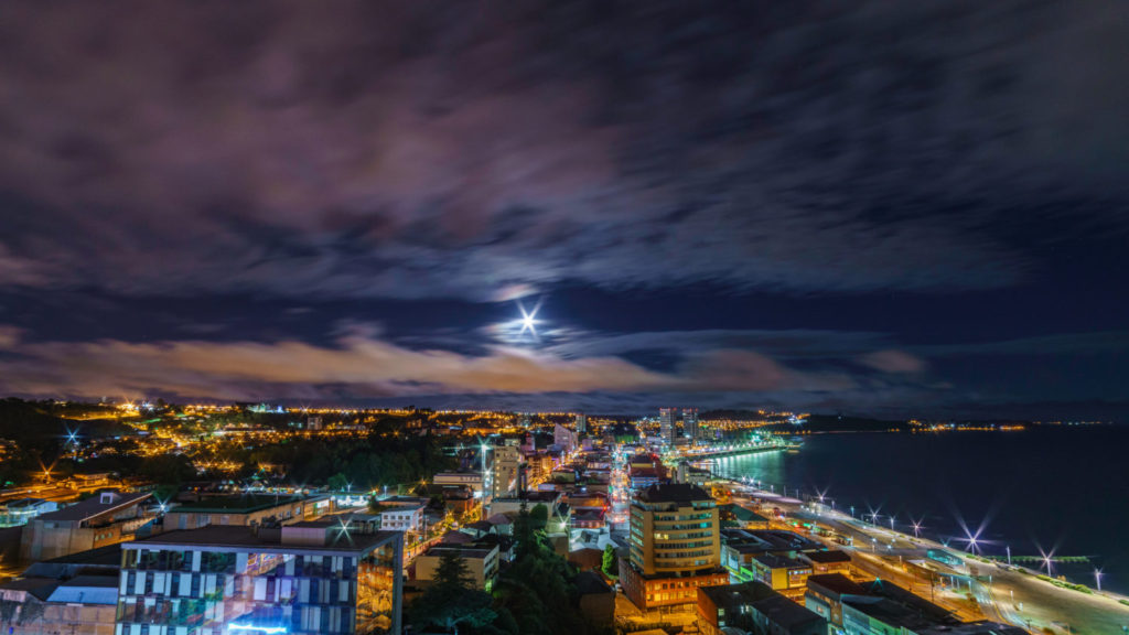 dusk in the city of puerto montt with the moon ID: 37014 Dusk in the city of Puerto Montt with the moon rising brighter than normal