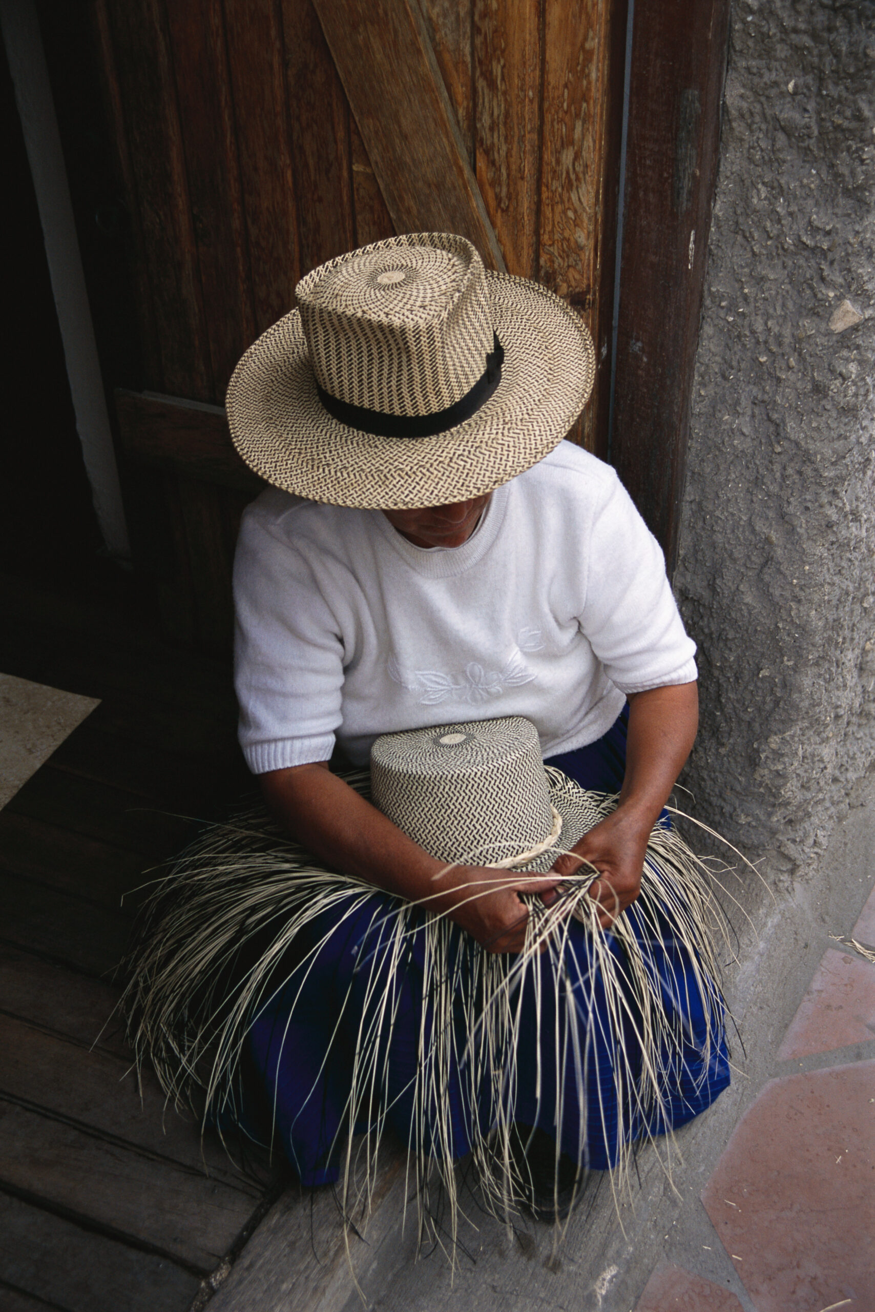 A woman living in Cuenca, Ecuador weaves a panama hat.