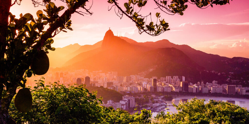 edificios frente al mar con la estatua de cristo redentor