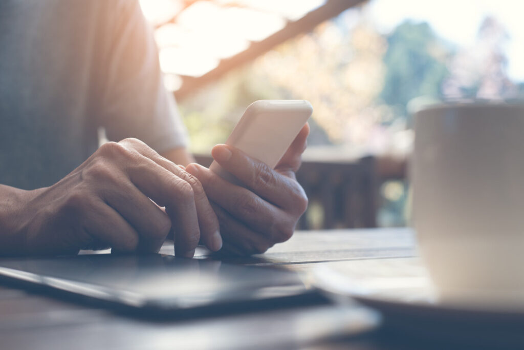 el hombre casual se relajo usando el telefono inteligente y
