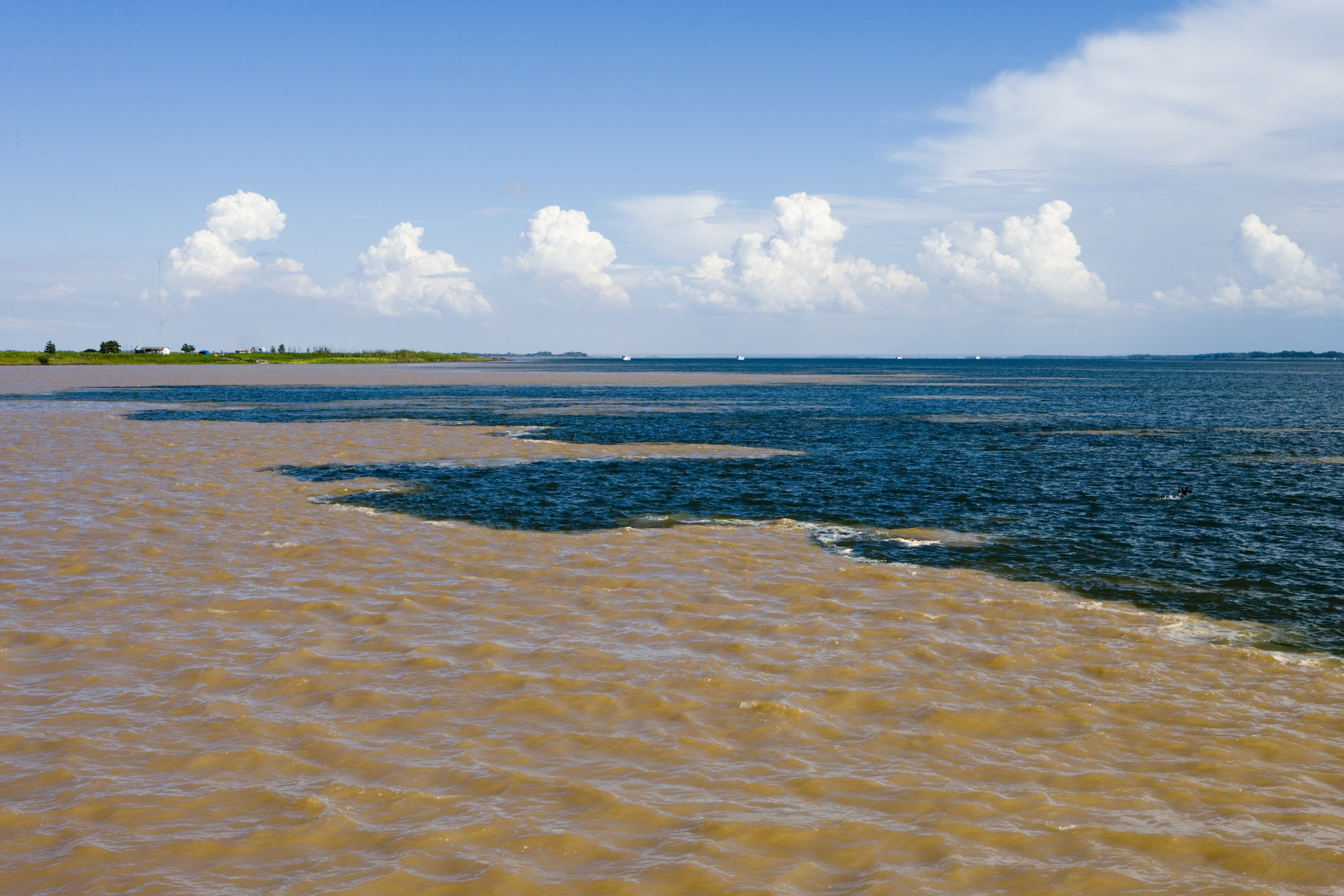 ‘Encontro das aguas’ meaning ‘meeting of the waters’ of Amazon river and Rio Tapajos river. ID: 69963 Santarem, Para, Brazil, South America