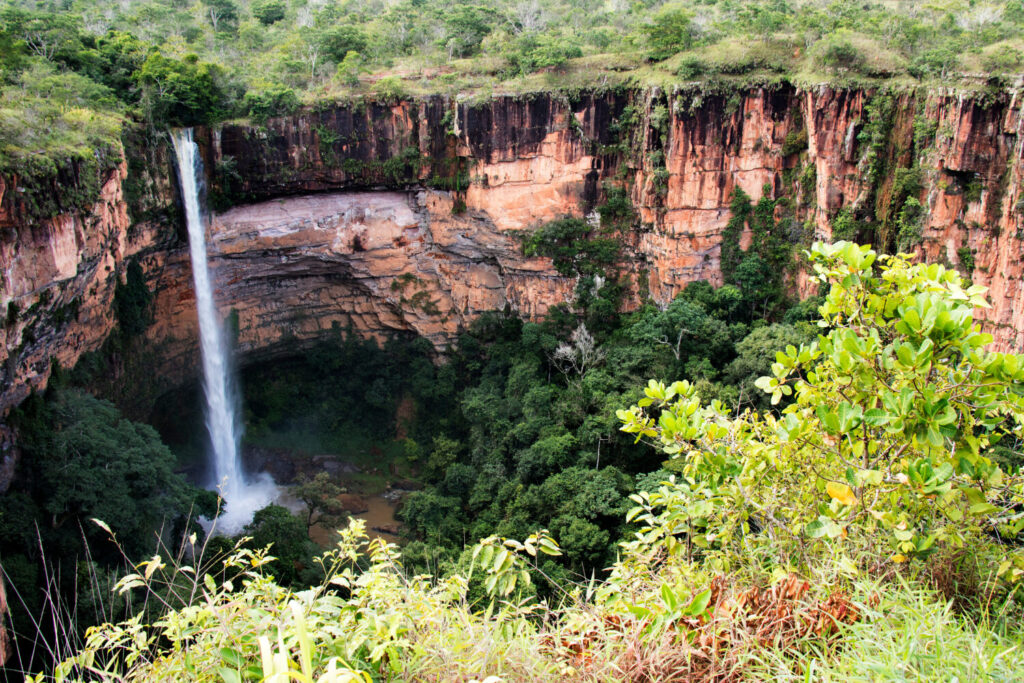 enorme cascada en chapada dos guimaraes ciudad ubicada en el