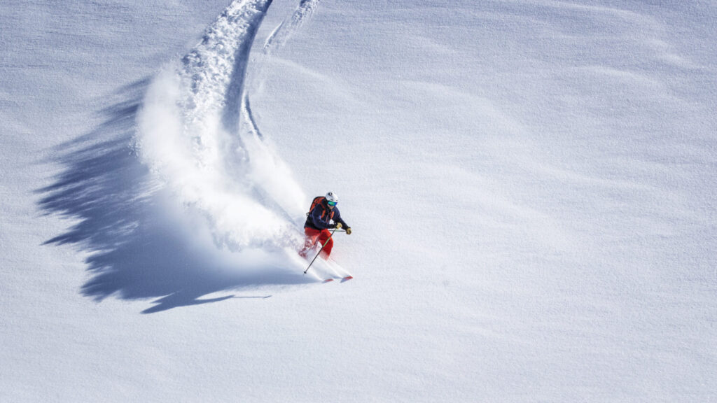esquiador de paseo gratis esquiando a traves de polvo fresco