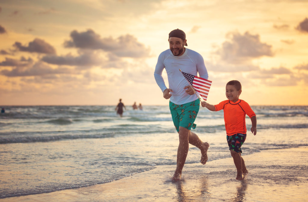 Father and son running with an american flag on the beach ID: 69253 Father and son running with an american flag on the beach
