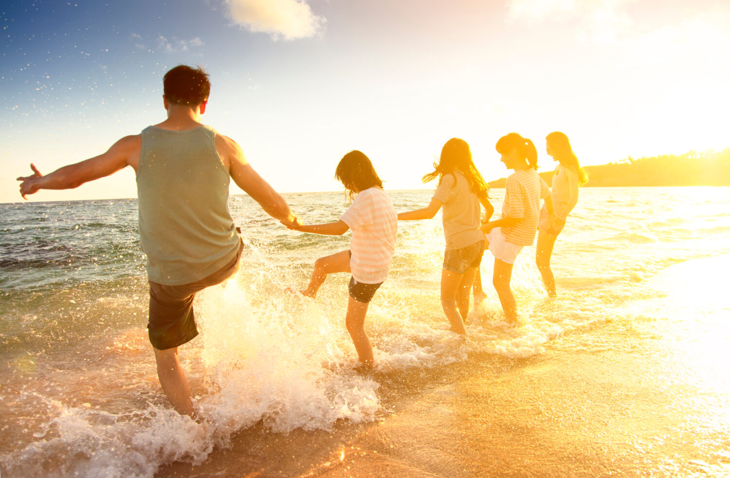 feliz familia divertiéndose en la playa
