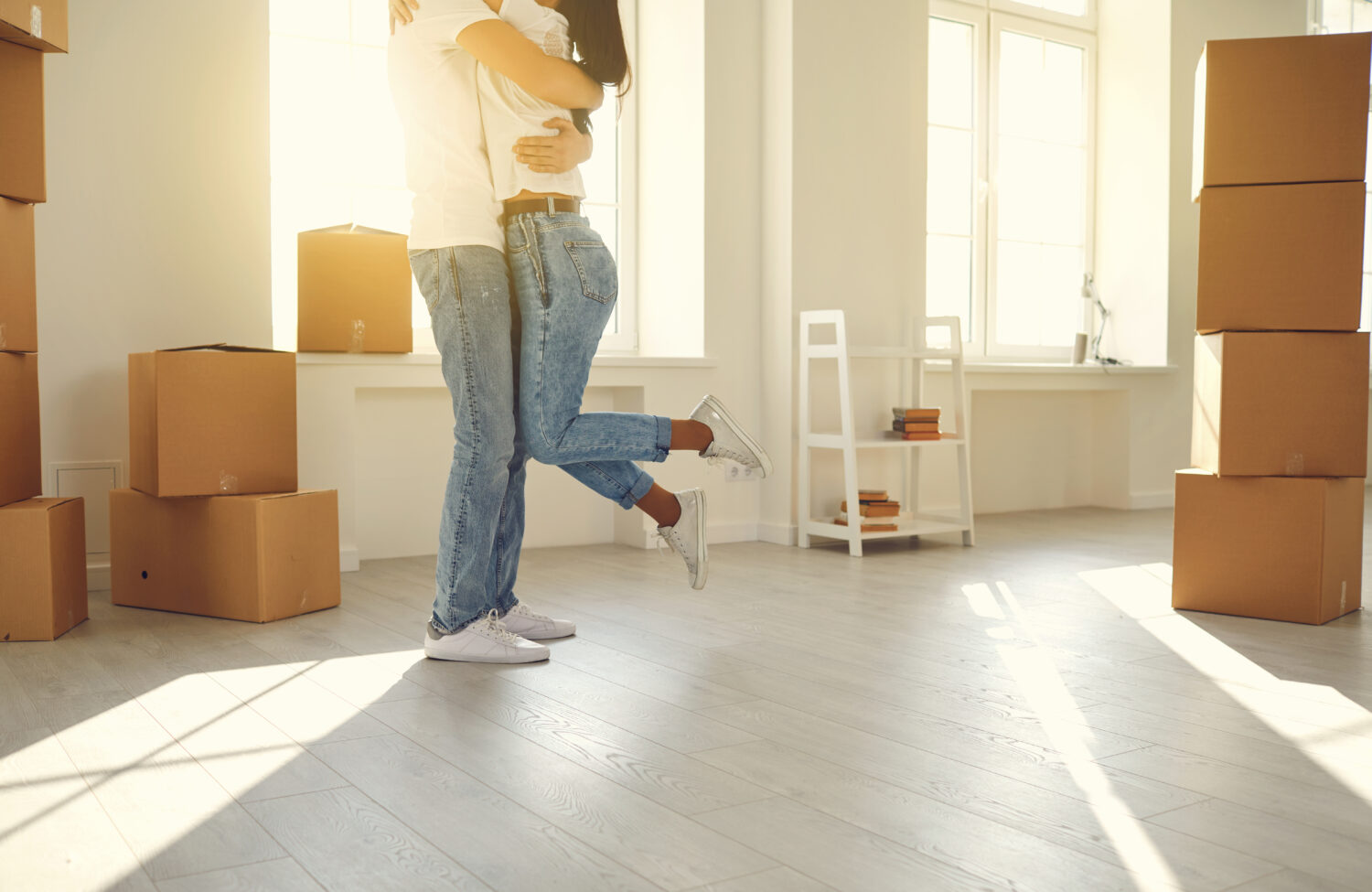 feliz matrimonio se abraza bailando en un nuevo departamento ID: 82218 Feliz matrimonio se abraza bailando en un nuevo departamento.