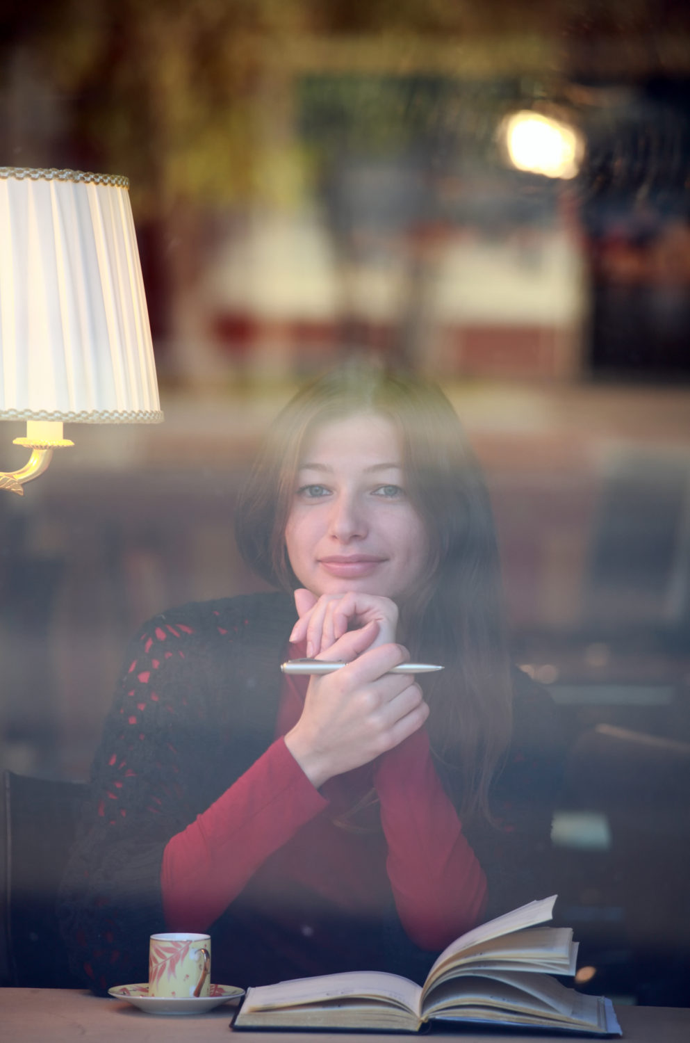 female reading a book view through the window ID: 42378 Female reading a book, view through the window