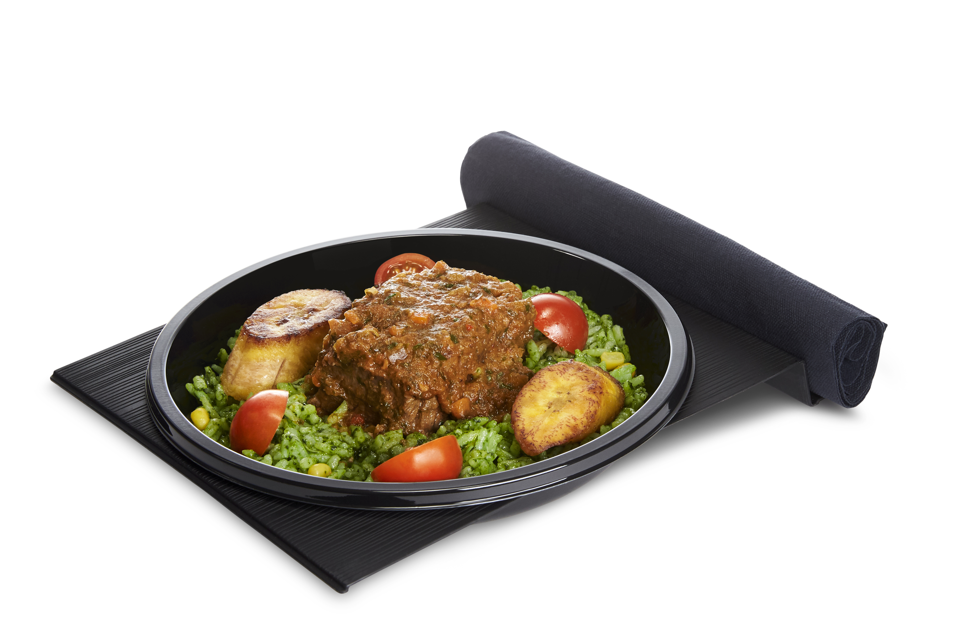 FRED – Seco de Res, arroz verde con maiz, maduro frito y tomates cherry