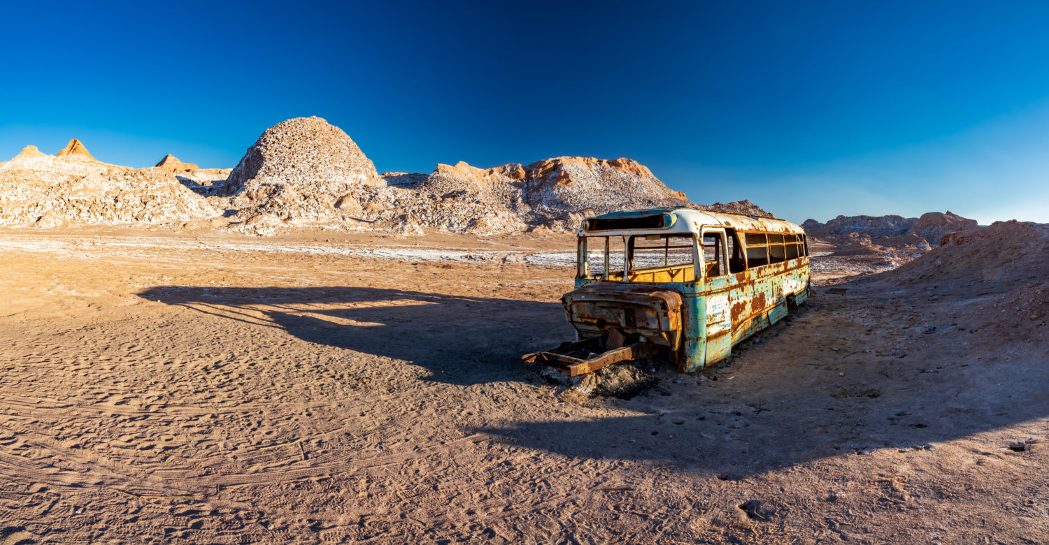 front view panorama of abandoned bus in the desert ID: 48527 Front view panorama of abandoned bus in the desert