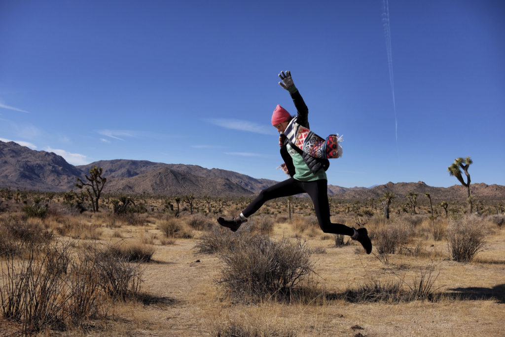 Full Length Of Woman Jumping In The Desert
